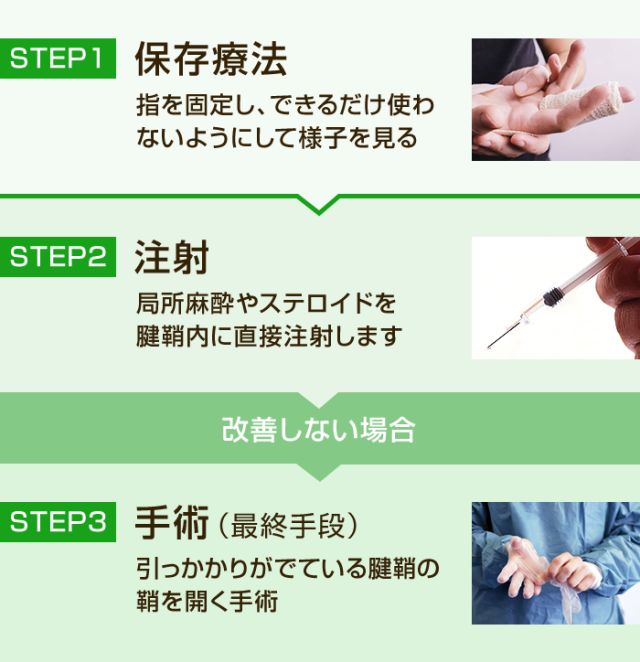ばね指で痛みもあり、整形外科に通ってもステロイド注射を打つだけでそれも何か月間の間だけで、医師から手術をすすめられました。